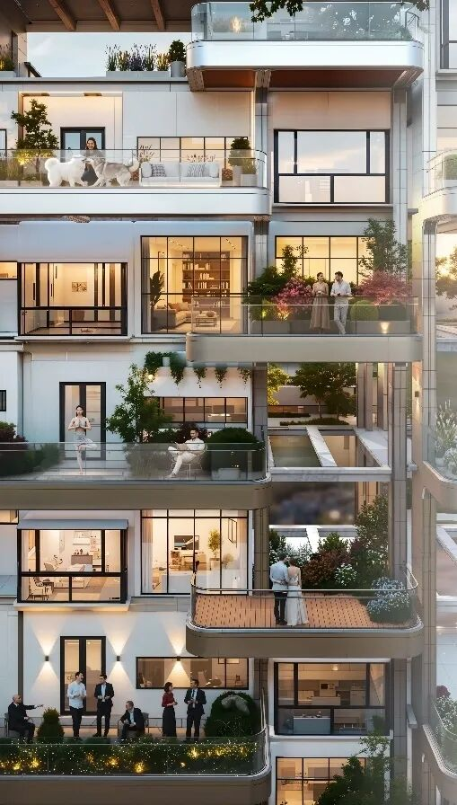 我們相信,好房子不僅關(guān)乎室內(nèi),更關(guān)乎社區(qū)。在標(biāo)準(zhǔn)層,我們設(shè)置了戶外共享花園。配合景觀螺旋梯貫通上下樓層,打破了傳統(tǒng)住宅樓層間的絕對封閉。鄰里間在這里可以實現(xiàn)“拜訪不入戶,串門不打擾”,在增加空間趣味性的同時,有效增進了鄰里感情,構(gòu)建和諧溫暖的社區(qū)氛圍。