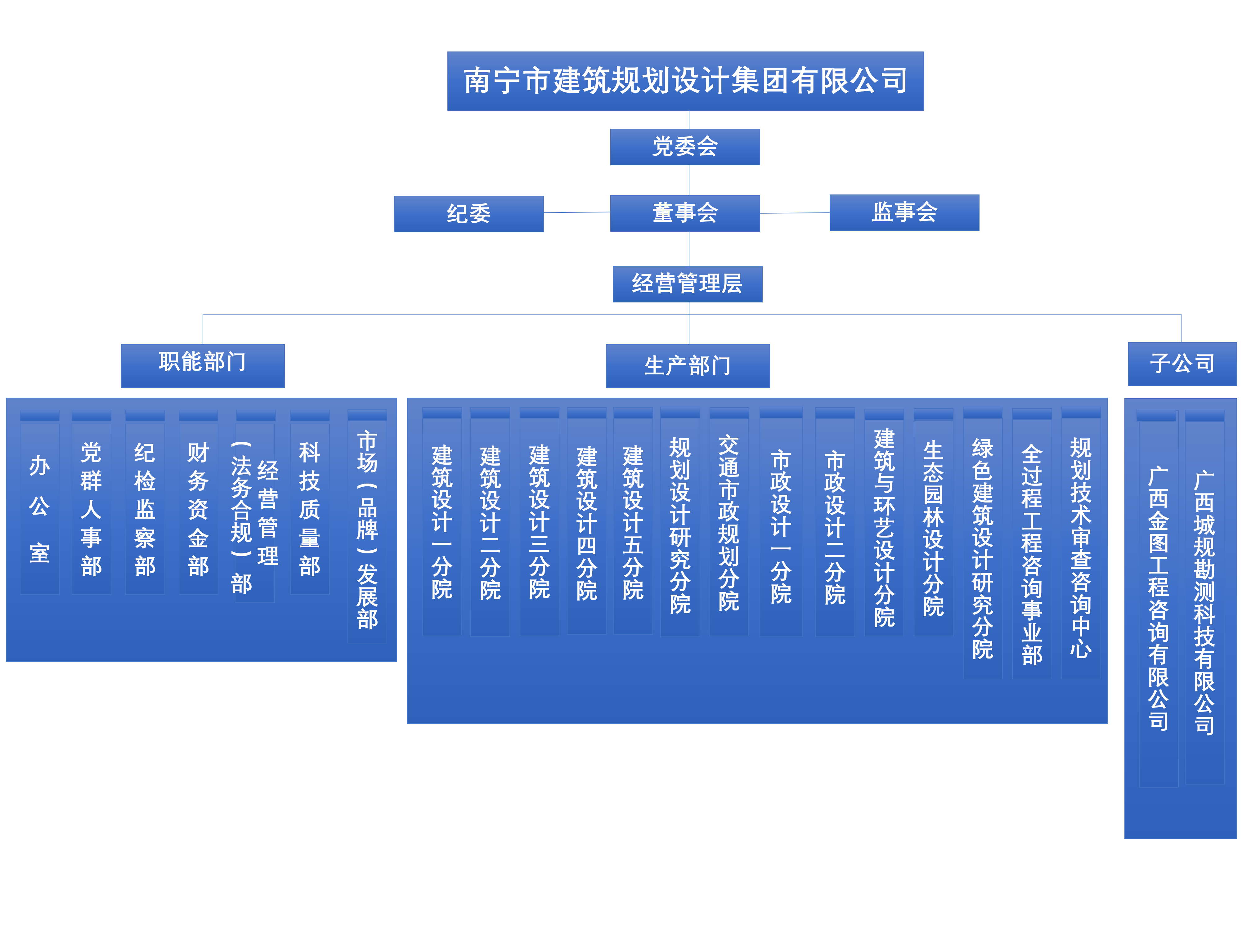 集團按照現代企業(yè)制度和法人治理結構要求,設有“三會一層”,即黨委會、董事會、監(jiān)事會和經理層,內設7個職能部門和14個業(yè)務生產部門,下屬2個全資子公司。