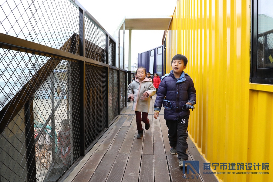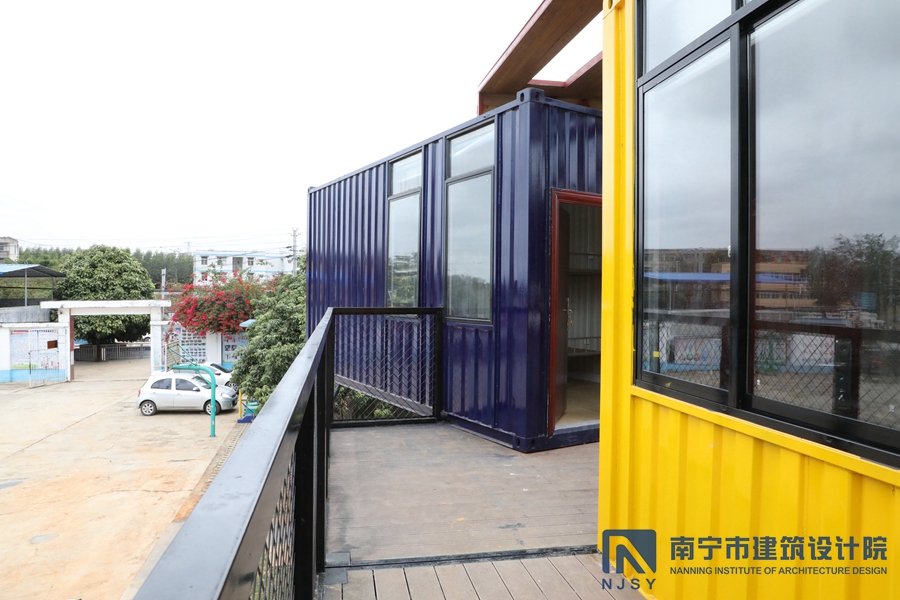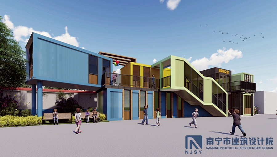 項(xiàng)目采用了集裝箱房屋的形式,由10個(gè)集裝箱構(gòu)成,通過堆積木的形式,根據(jù)學(xué)生兒童所需的建筑風(fēng)格和功能需求,將集裝箱橫豎排列,形成一定的退臺(tái)和露臺(tái)空間,為孩子們提供更多共享活動(dòng)空間。