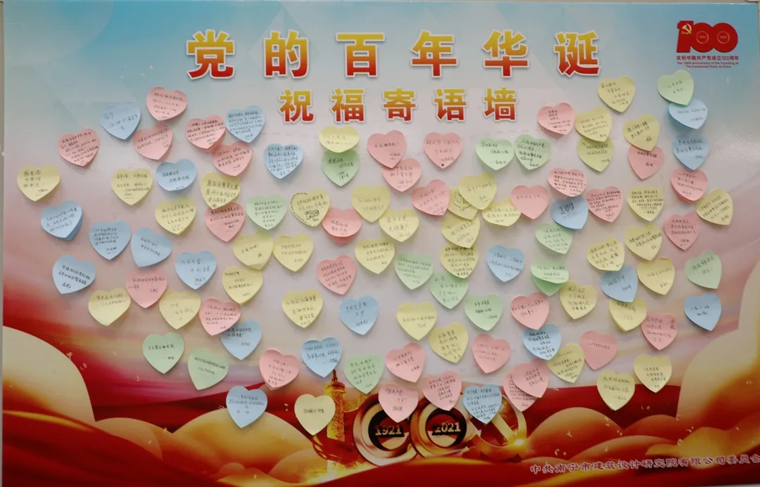 在大會結(jié)束后,熱血沸騰的黨員同志齊聲高唱經(jīng)典歌曲《沒有共產(chǎn)黨就沒有新中國》,抒發(fā)了對黨的熱愛和祝福。公司黨委還在觀看會場精心設(shè)置了一面祝福墻,黨員同志和干部職工紛紛來到祝福墻前,寫下自己對中國共產(chǎn)黨百年華誕的美好祝福。