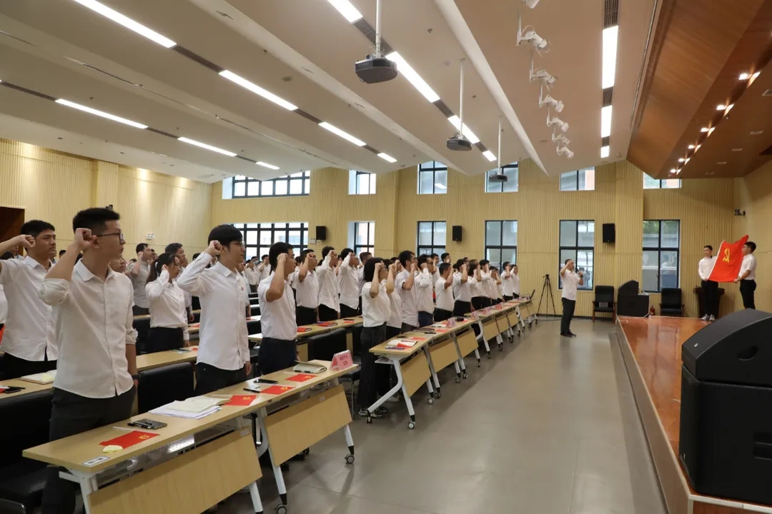 奮斗百年路,啟航新征程。當天上午,公司全體黨員面向黨旗,舉起右拳,再一次重溫入黨誓詞?!拔抑驹讣尤胫袊伯a(chǎn)黨,擁護黨的綱領(lǐng),遵守黨的章程……”鏗鏘有力的宣誓聲在會場回蕩。