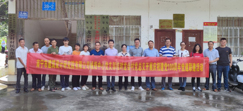 7月9日,南寧市建筑設(shè)計(jì)研究院有限公司城規(guī)中心黨支部聯(lián)合隆安縣退役軍人事務(wù)局黨支部、隆安縣布泉鄉(xiāng)龍會(huì)村黨總支部在布泉鄉(xiāng)龍會(huì)村開展慶祝建黨100周年黨建聯(lián)建活動(dòng)。隆安縣布泉鄉(xiāng)鄉(xiāng)長(zhǎng)方寧、副鄉(xiāng)長(zhǎng)黃玉勤,城規(guī)中心黨支部書記黃炎佳、總經(jīng)理韋波,隆安縣退役軍人事務(wù)局副局長(zhǎng)李大安以及布泉鄉(xiāng)龍會(huì)村黨總支部黨員代表共計(jì)80余人參加本次活動(dòng)。
