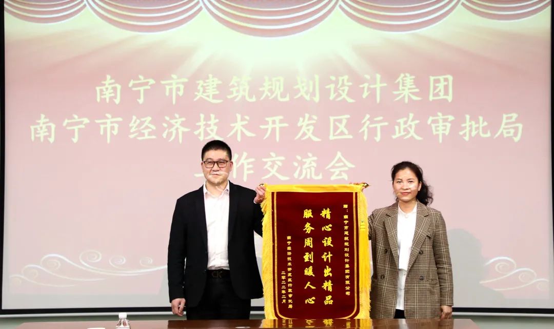 集團(tuán)總經(jīng)理、副董事長(zhǎng)馮江泉對(duì)何建匯局長(zhǎng)一行的到來表示熱烈歡迎,同時(shí)衷心感謝經(jīng)開區(qū)行政審批局一直以來對(duì)我們集團(tuán)的大力支持。馮江泉表示,經(jīng)開區(qū)打造的“媽媽式服務(wù)”作為一項(xiàng)惠企工程,以“先試先行、高效為民”為工作理念,大膽創(chuàng)新推出了“拿地即開工”等系列改革舉措,全力打造“政策最優(yōu),服務(wù)最好”的營商環(huán)境,這是廣大企業(yè)的福音,這種貼心的服務(wù)意識(shí)、真誠的服務(wù)態(tài)度,是我們集團(tuán)學(xué)習(xí)的榜樣和楷模。作為一家從事設(shè)計(jì)咨詢服務(wù)的企業(yè),南寧市建筑規(guī)劃設(shè)計(jì)集團(tuán)一定繼續(xù)提高服務(wù)意識(shí),把好質(zhì)量關(guān),配合經(jīng)開區(qū)的各項(xiàng)工作,做好項(xiàng)目業(yè)主和審批局之間的橋梁,讓項(xiàng)目業(yè)主輕裝上陣,推動(dòng)項(xiàng)目加速推進(jìn),更好地為經(jīng)開區(qū)的發(fā)展做貢獻(xiàn)。