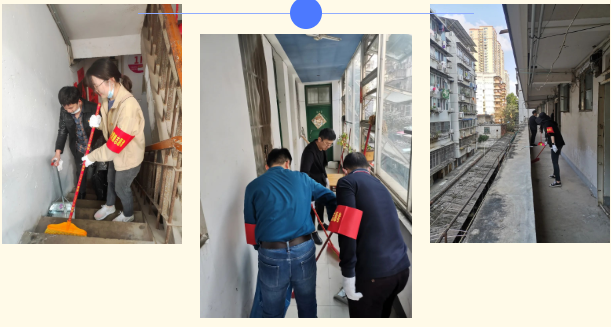 當(dāng)天下午,黨員志愿者們戴上志愿者袖標(biāo),拿上垃圾鏟、垃圾袋、掃把等清潔工具來到東一里社區(qū)的老舊小區(qū)。經(jīng)志愿者們現(xiàn)場了解,該小區(qū)居民樓建造時(shí)間較長,老年住戶較多,樓頂堆放雜物日積月累,樓道里也有大樓廢棄的家具、物品,不僅影響了小區(qū)清潔美觀,還存在較大的火災(zāi)隱患。了解情況后,志愿者們立即挽起袖子,明確分工后便熱火朝天地穿梭在公共走道、樓棟間開展志愿服務(wù)。