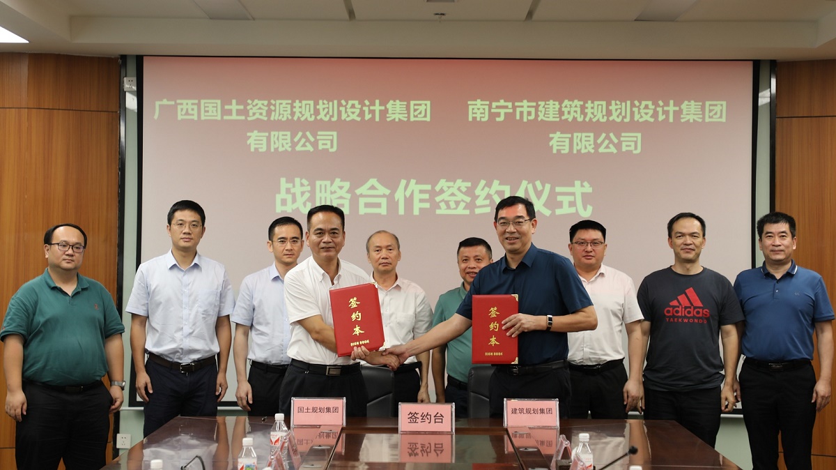 6月28日,南寧市建筑規(guī)劃設(shè)計(jì)集團(tuán)有限公司與廣西國土資源規(guī)劃設(shè)計(jì)集團(tuán)有限公司戰(zhàn)略合作簽約儀式在我集團(tuán)舉行。集團(tuán)黨委書記、董事長韋文學(xué)和廣西國土資源規(guī)劃設(shè)計(jì)集團(tuán)黨委書記、董事長鄧強(qiáng)出席儀式并見證簽約,集團(tuán)總經(jīng)理、副董事長馮江泉和廣西國土資源規(guī)劃設(shè)計(jì)集團(tuán)總經(jīng)理、黨委副書記、副董事長魏玉平分別代表雙方簽訂戰(zhàn)略合作協(xié)議。
