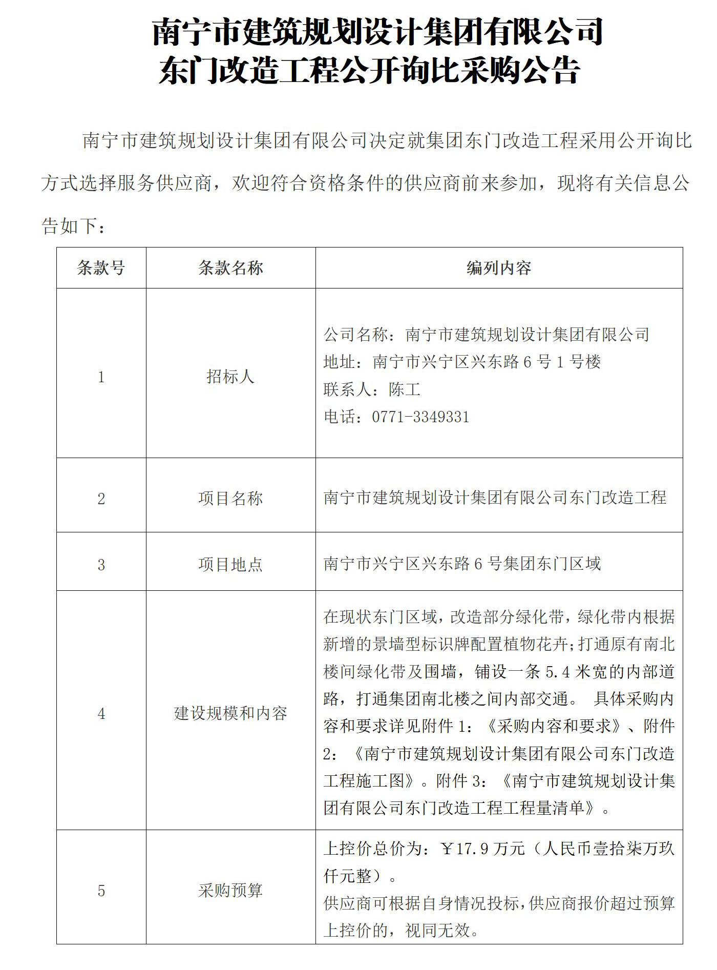 附件3:南寧市建筑規(guī)劃設(shè)計(jì)集團(tuán)有限公司東門改造工程招標(biāo)工程量清單